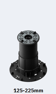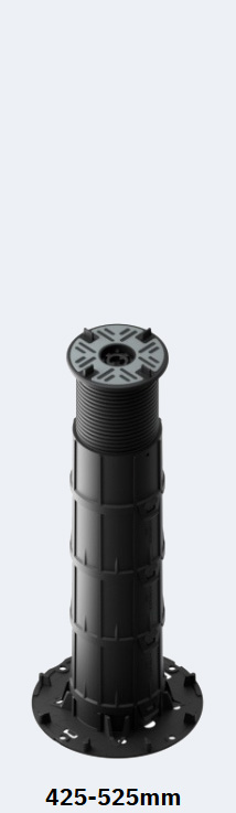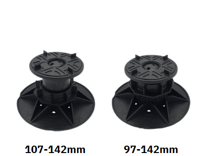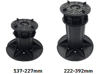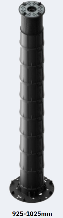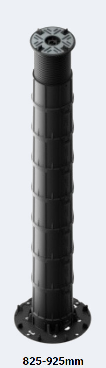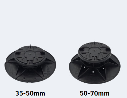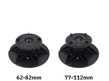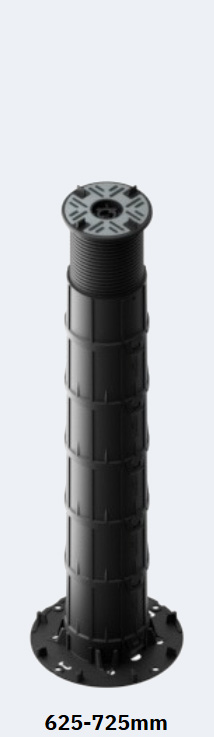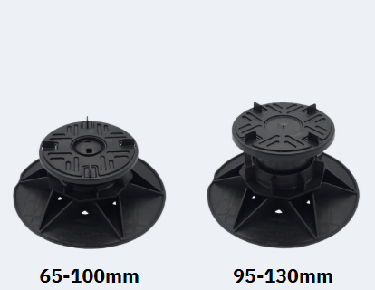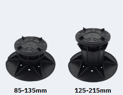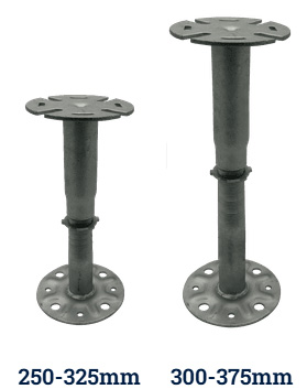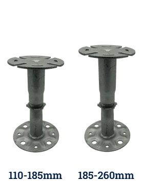 The headpieces and baseplates are identical across the entire range, so even when there is a very large fall across the roof deck, the interface between the surface beneath and the fitting for the paving slabs are identical.