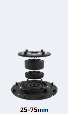 Mega Balance offers the widest height coverage of any adjustable pedestal system in the UK, using only three pedestal sizes and three extender components to reach build-ups from 25mm to 1025mm.