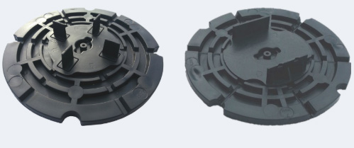 On the upper surface they have four lugs to provide regular spacing between paving slabs. The under surface incorporates grooves to allow the drainage of water below the paving into the appropriate drainage outlet. This avoids the creation of puddles on a paved surface.