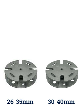 Lugs 4mm, 6mm and 10mm thick are available, as well as small 10mm high lugs suitable for use with thinner porcelain tiles, for example (always check with the tile manufacturer that the tile is strong enough to be used in a suspended system). Headpieces with two lugs instead of four are available and flat-headed supports can also be purchased.
