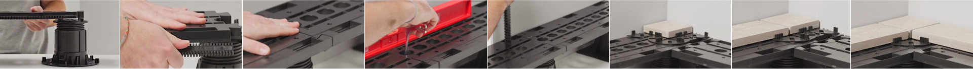 Border Shield is an anti tipping perimeter safety system used with raised paving on Mega Balance pedestals. It is supplied as part of a Mega Balance pedestal layout to secure exposed edge tiles and cut pieces.