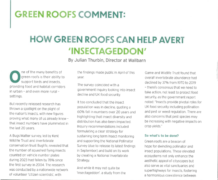 One of the many benefits of green roofs is their ability to support birds and insects, providing food and habitat corridors in urban – and even more rural – settings.